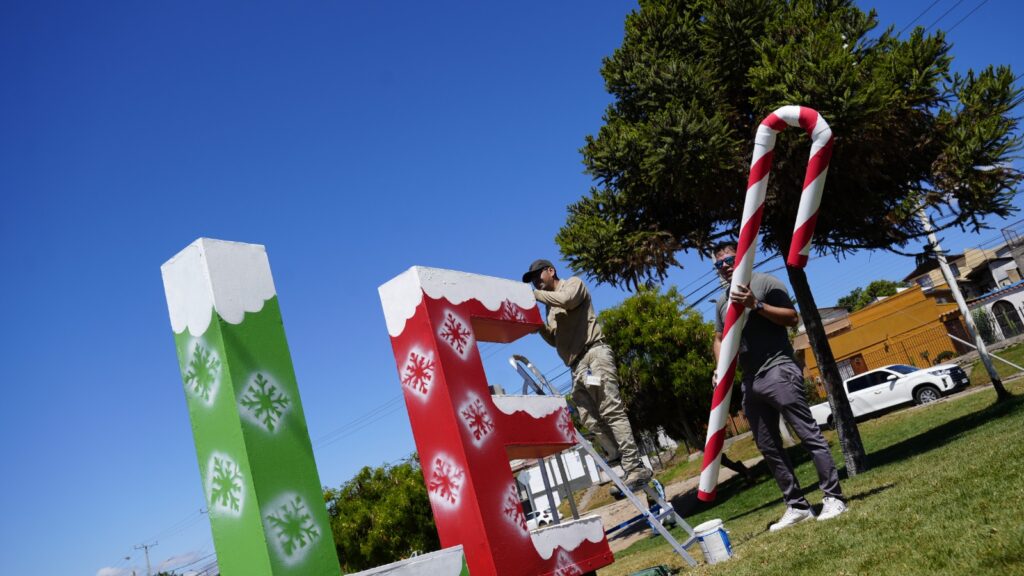 El Departamento de Operaciones del Municipio de Ovalle inició los trabajos de hermoseamiento de las letras volumétricas de acceso a la ciudad y otros puntos clave, aplicando los clásicos colores festivos e incorporando figuras luminosas para potenciar el espíritu navideño.