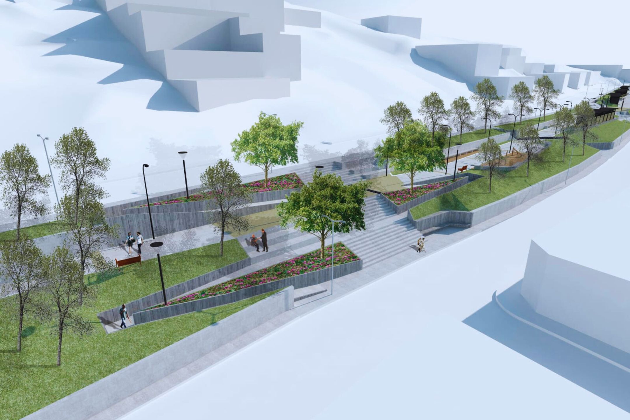 En materia ambiental, el parque incorporará árboles, arbustos, cubresuelos, herbáceas y enredaderas, junto a un sistema de riego tecnificado y redes de evacuación de aguas lluvias, elementos que apuntan a una mantención más eficiente y sostenible del área verde.