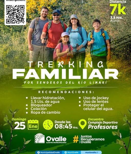 Una actividad de trekking familiar se desarrollará este domingo 25 de enero en Ovalle, con un recorrido por los senderos del río Limarí, iniciativa que busca...